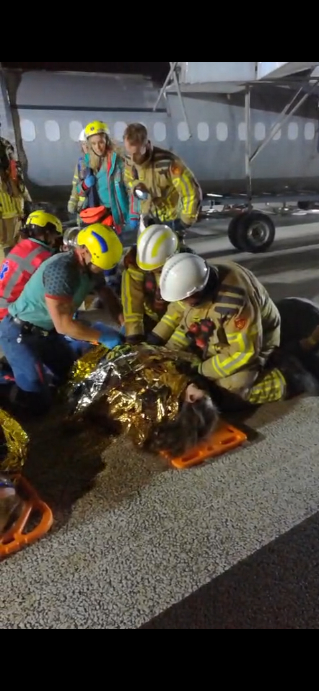 Wij werden met een aantal zwaargewonden in een donker vliegtuig geplaatst en moesten wachten tot de hulpdiensten arriveerden. Alle slachtoffers werden met hulp van een plank uit het wrak verwijderd, waarna er buiten verder werd gehandeld.